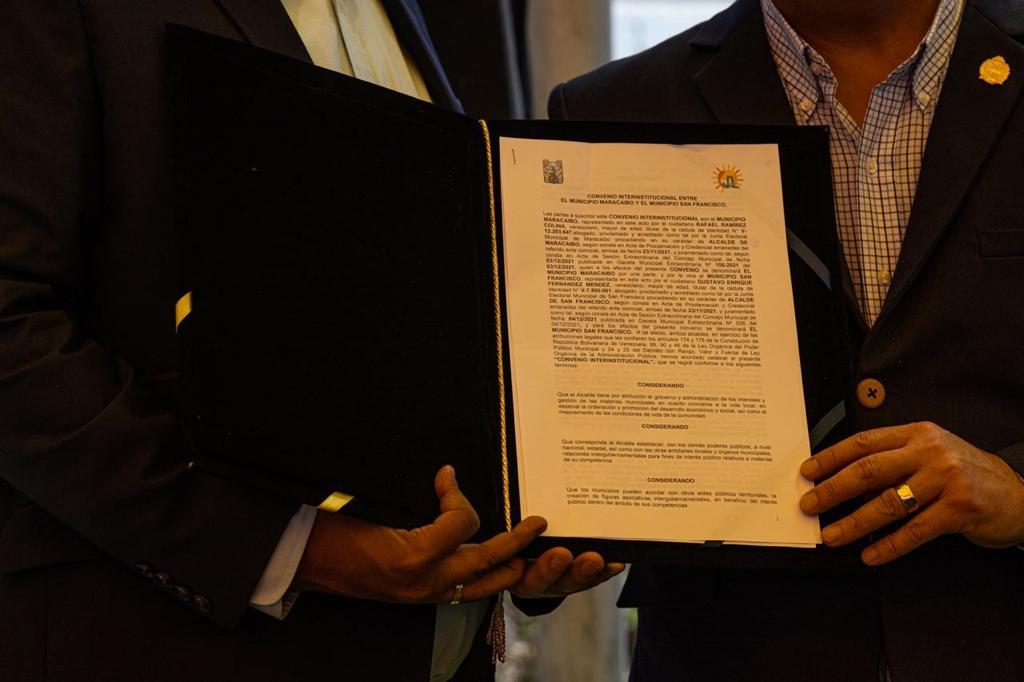 Un convenio interinstitucional enmarcado en la cooperación mutua en relación a la ordenación urbana, planificación, ornato, servicios públicos, manejo de desechos, vialidad, transporte público, seguridad, entre otras áreas firmaron este martes 21 de junio los alcaldes de Maracaibo, Rafael Ramírez Colina, y de San Francisco, Gustavo Fernández.