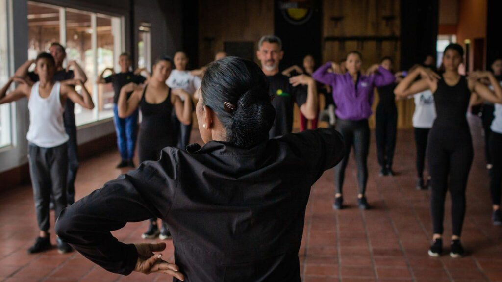 Durante 4 horas académicas los bailarines realizaron ejercicios de neurocalentamiento, disfrutaron de una extensa clase de tambores y el ensayo de una coreografía propia de la Licenciada en Danza de la Unearte.
