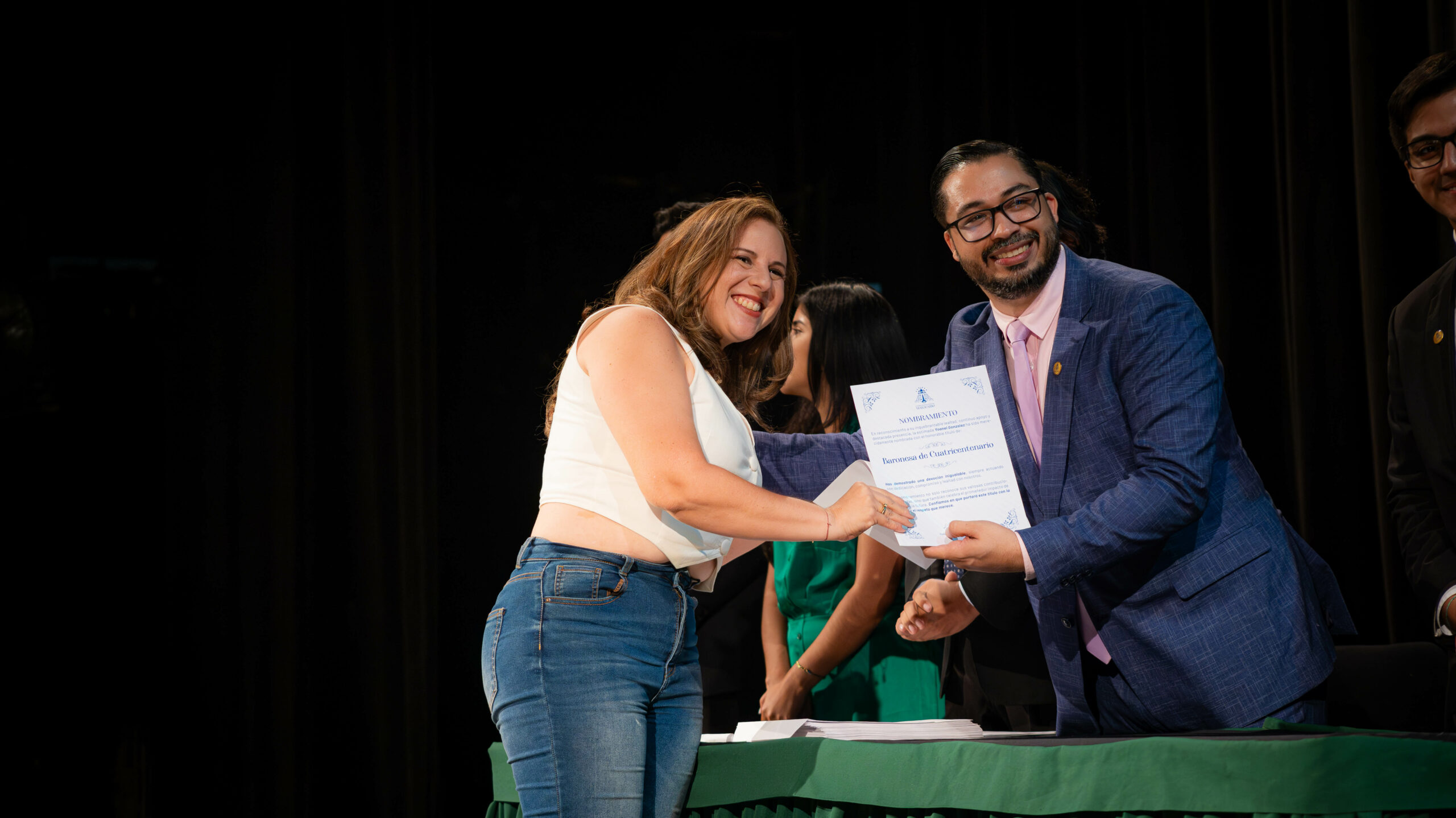 “Vanessa Linares de Ramírez ha sido una pieza fundamental en el engranaje de nuestra organización. Su ayuda constante, disposición inquebrantable y extraordinario profesionalismo han impulsado proyectos y tareas que han transformado la vida cultural de Maracaibo. Su amor y pasión inigualable han dejado una marca indeleble en cada iniciativa emprendida”, leyó Conde durante la entrega del reconocimiento a la Primera Dama de Maracaibo.
